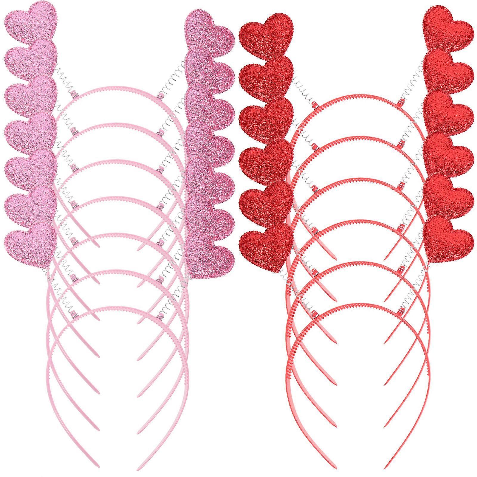 12pcs Love Heart Sequin Headbands Lightweight Comfortable Party Headgear for Valentine's Day Carnival Accessories