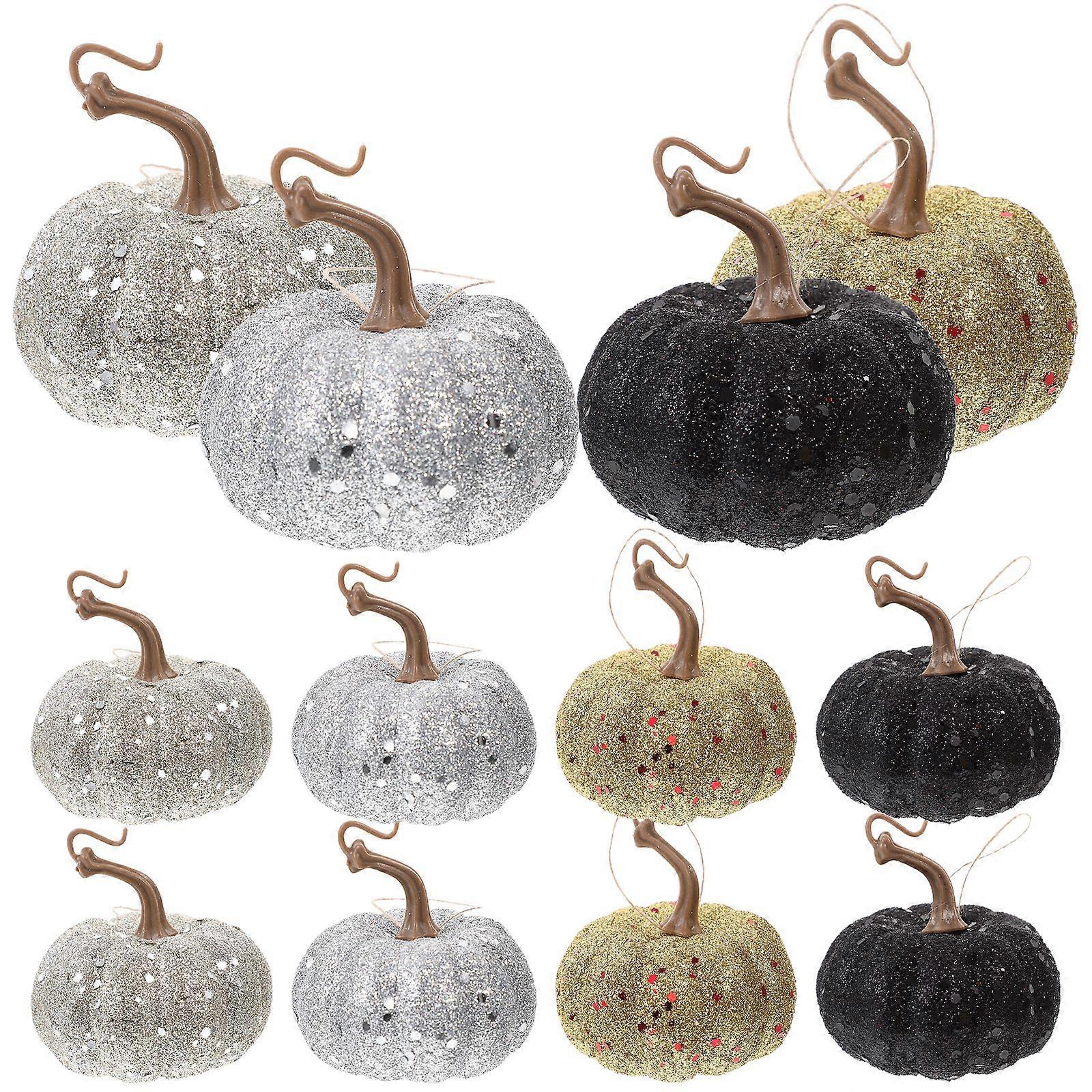 12Pcs Artificial Fake Pumpkins Halloween Autumn Artificial Sparkling Pumpkins Harvest Shining Pumpkins