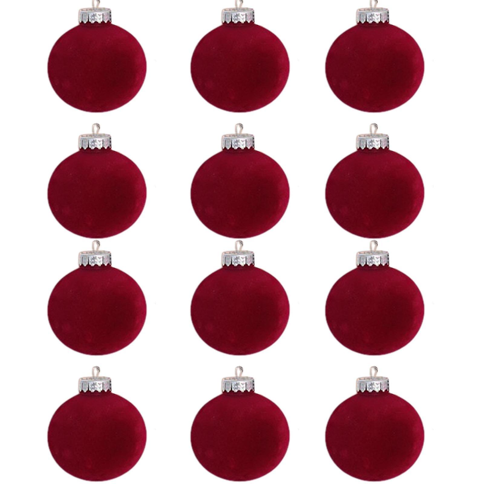 12 Pcs Velvet Christmas Balls Flocked Christmas Tree Ball Ornaments Plastic Balls Xmas Decorative Hanging Ornaments Christmas Tree Decoration 3.14 In