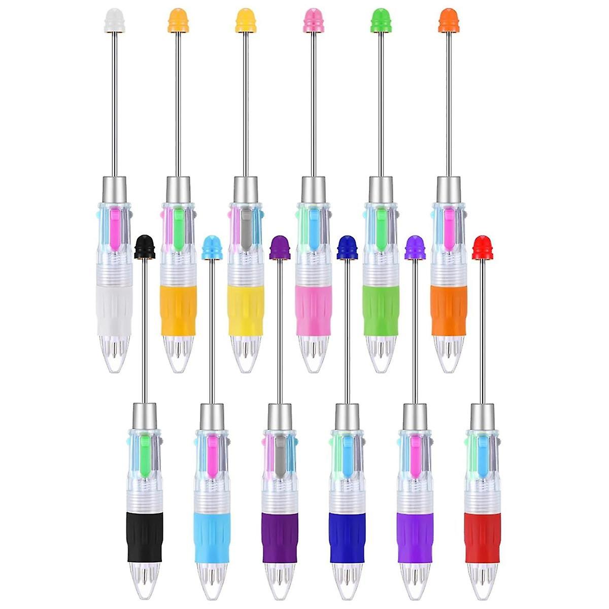 12 Pcs Multicolor Beadable Pens 4In1 Colored Beads Pen Retractable Ballpoint Pens for DIY Making Kit Students Children