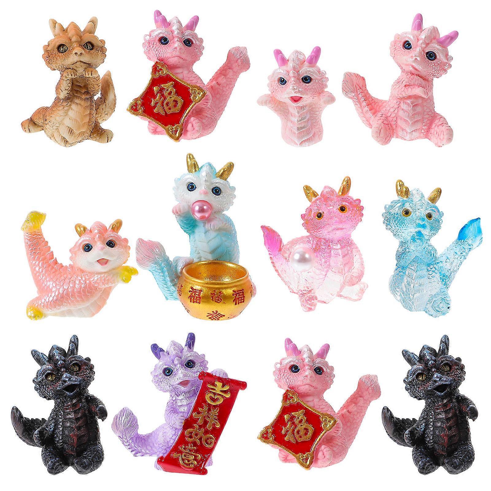 12pcs Mini Resin Dragon Figurines Mixed Style Cartoon Zodiac Decorations for Home Desktop Garden Dollhouse Cake Easter Craft Statues Ornaments