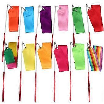 12pcs 2 Meters Rhythmic Art Gymnastics Ribbon with Stick Children Dancing Streamers Riband Rod for Gymnastics