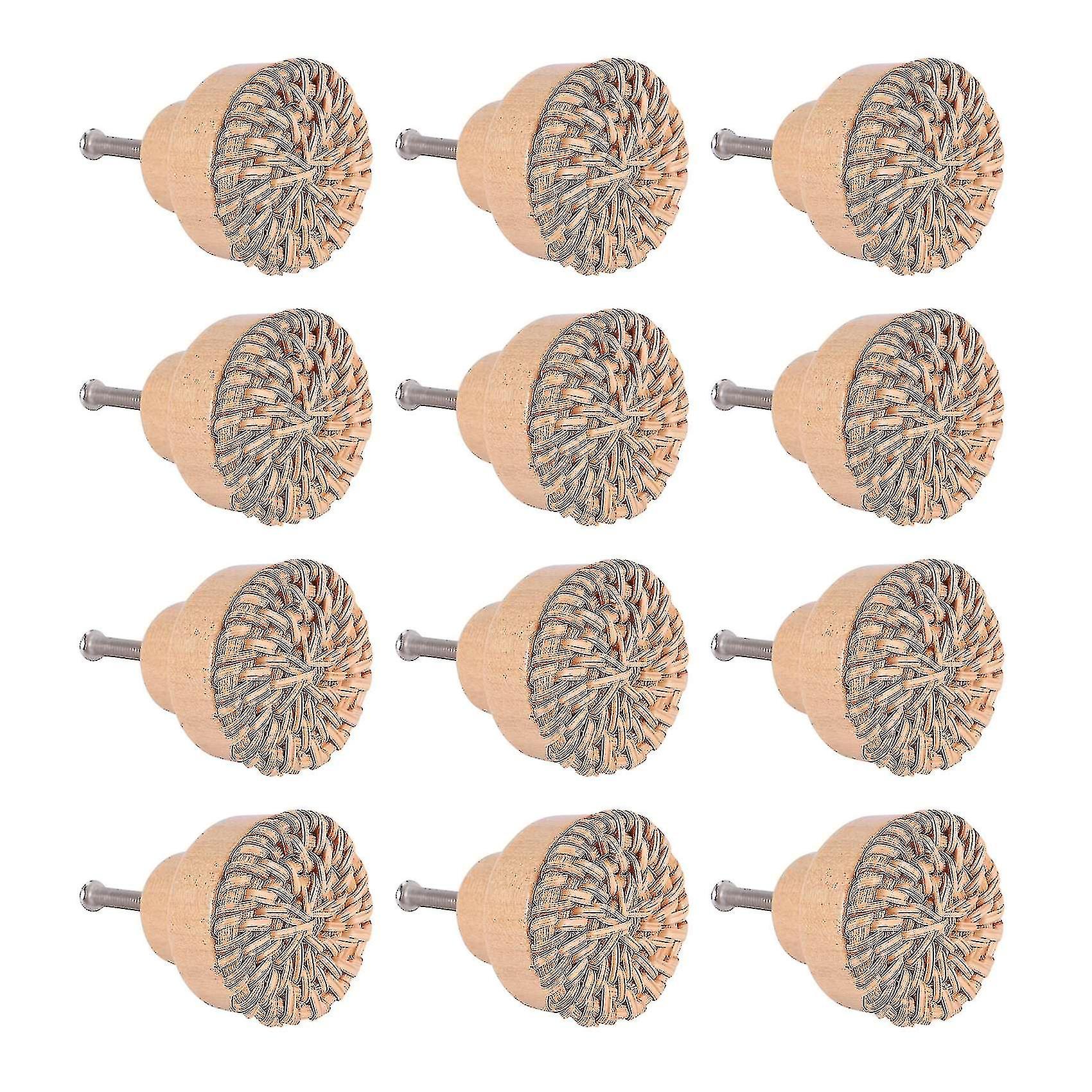 12 Pieces 35mm Boho Dresser Knobs Rattan Knobs Wood Drawer Knobs Round Wooden Dresser Handles With