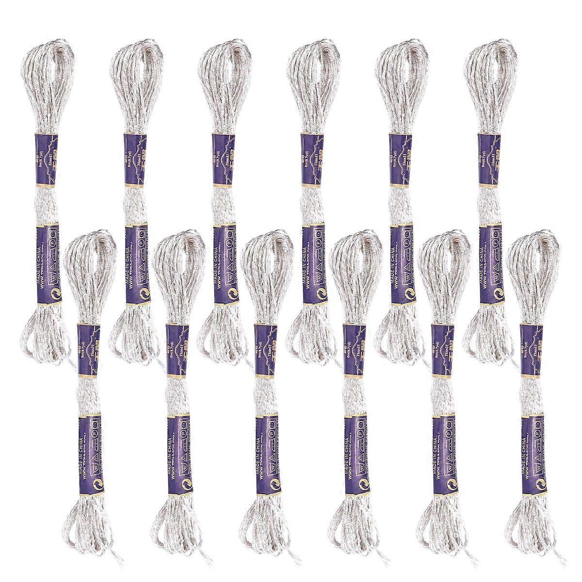 12PCS 8 Meter 12 Strands Metallic Embroidery Thread DIY Portable Household Manual Sewing Thread (Silver)
