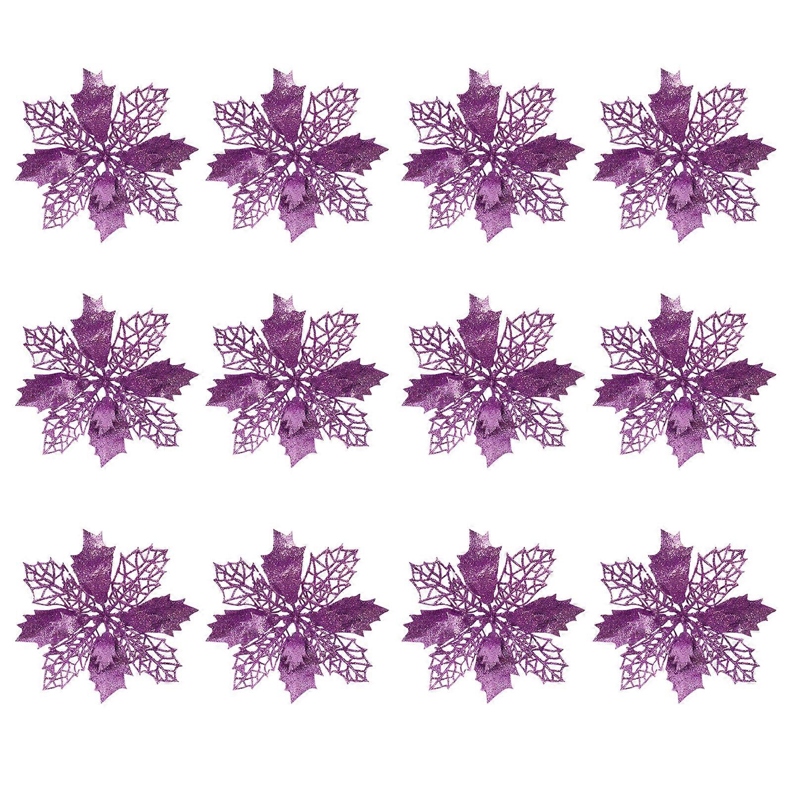 12pcs Hollow Fake Flowers Xmas Tree Simulation Flowers Garland Decoration Accessories
