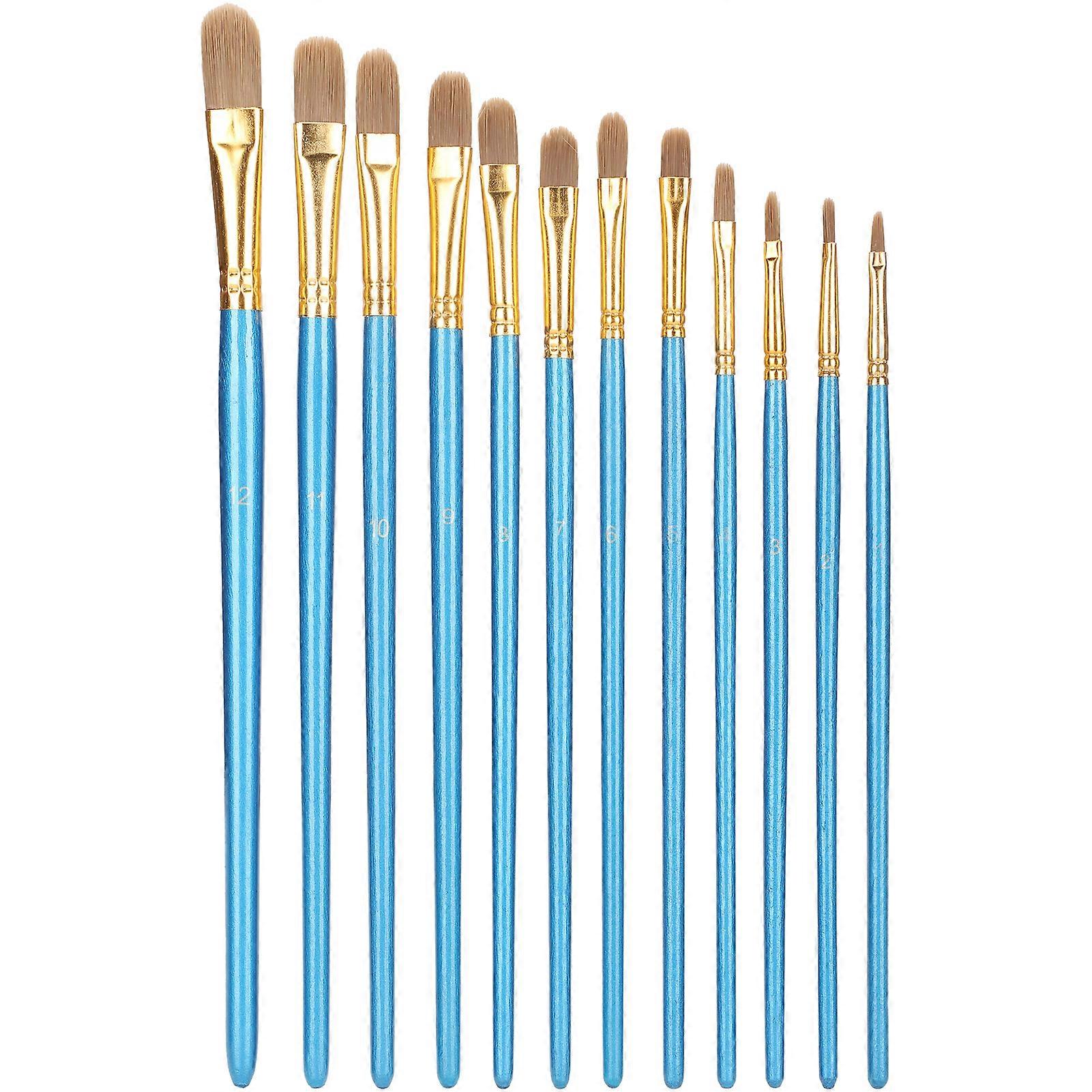 12pcs Round Tip Nylon Brushes Set Blue Wooden Penholder Aluminium Tube Artist Drawing Tools
