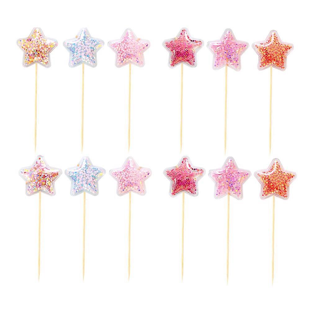 12pcs Pentagram Birthday Cake Topper Sequin Cake Insert Cards Cake Decoration