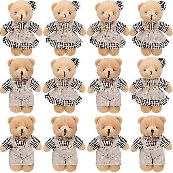 12 stuffed animals teddy bears, mini pair bears in burlap clothes animal toys small plush stuffed teddy bears for Christmas Cs fast