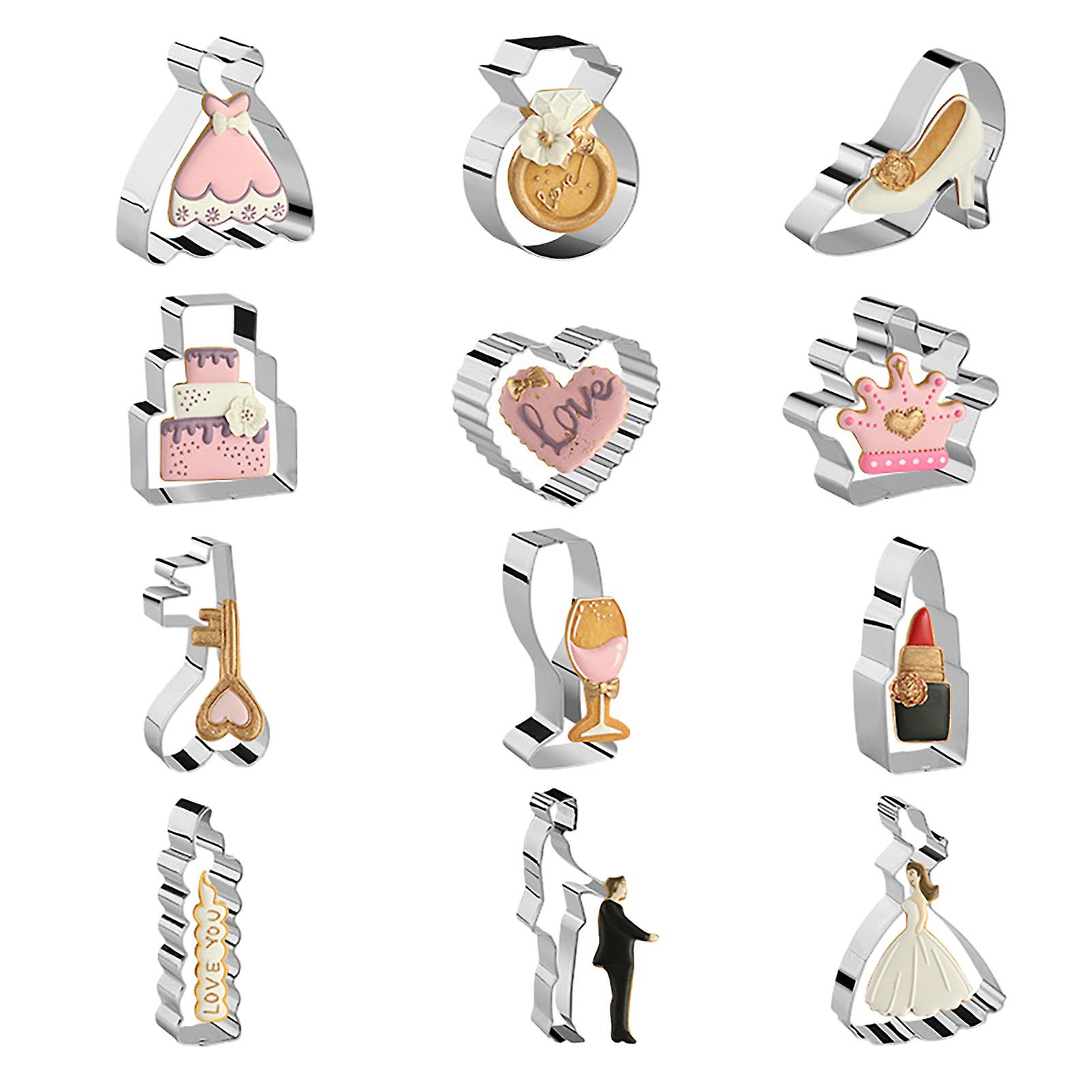12 Pcs Cookie Cutters Different Shapes Food Grade Stainless No Deformation Polished Heat Resistant Wedding Party New Year Birthday Biscuit Diy Molds