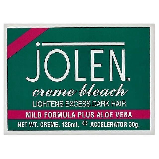 Jolen Creme Bleach Mild - Lightens Excess Dark Hair - 125ml Jolen Creme Bleach Mild formula With aloe veraFor All Hair Types & ColorsMade especially for sensitive skin, this formula is great for face, eyebrows and body. This no drip application makes dealing with unwanted hair a breeze. Our Creme Bleach is easy, gentle and includes a no-mess mixing cup.Description:Go confidently with Jolen Creme Bleach Sensitive Skin Formula Its the simplest and safest way to lighten unwanted hair so that it blends beautifully with your natural skin tone, making it virtually invisible And its perfect to lighten your eyebrows to match your hair color Fast and effective every time New Mixing Cup makes it easier to use No drip application Contains Aloe Vera so its gentler for sensitive skin For all hair types and colorsCREME INGREDIENTS:WATER, HYDROGEN PEROXIDE, GLYCERYL STEARATE, ISOPROPYL MYRISTATE, STEARYL STEARATE, PROPYLENE GLYCOL, ALOE VERA GEL, STEARIC ACID, STEARAMIDOPROPYL DIMETHYLAMINE, PHOSPHORIC ACIDACCELERATOR INGREDIENTS:AMMONIUM BICARBONATECheck out myother items
