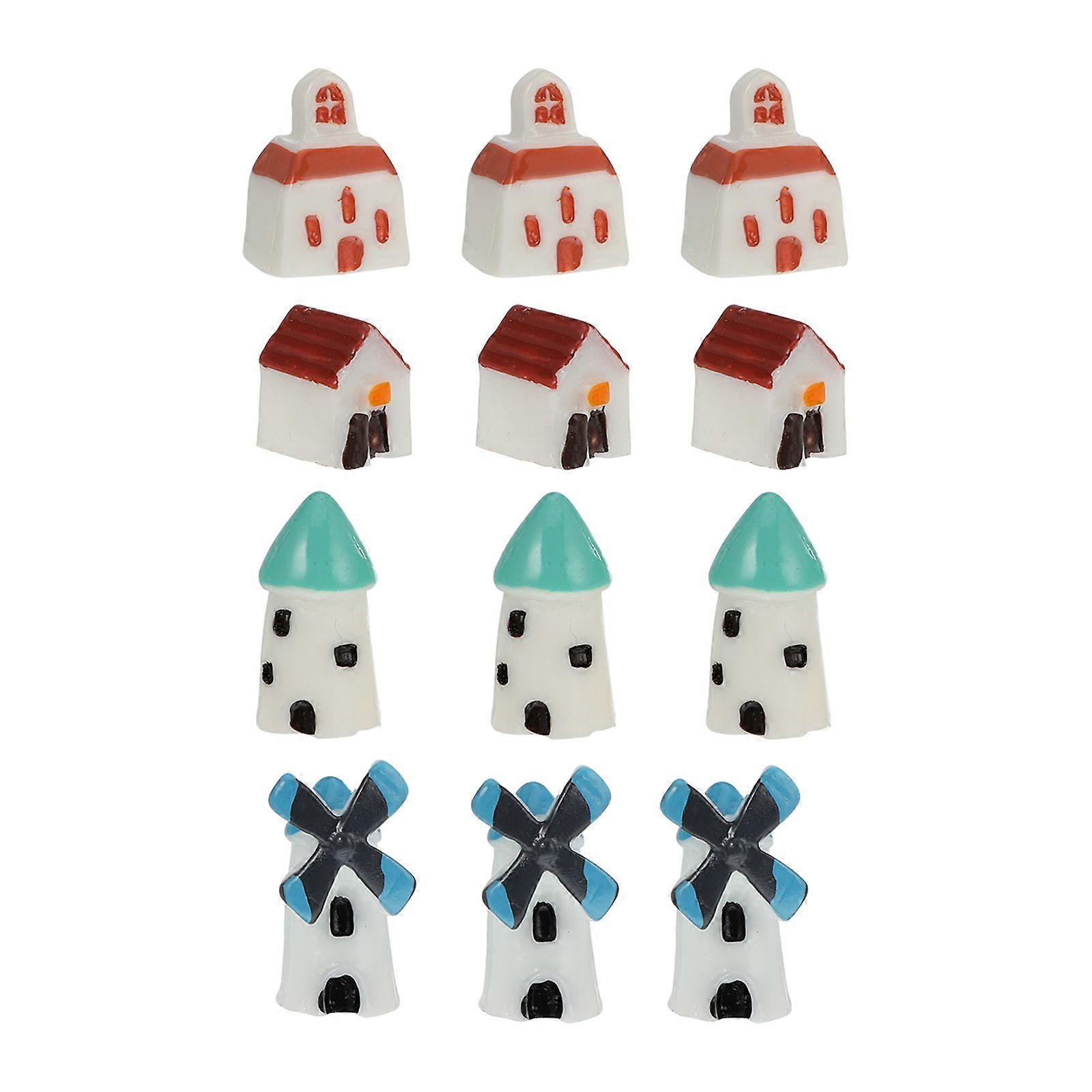 12pcs Miniature Windmill House Garden Ornaments Artificial Figurines Decor
