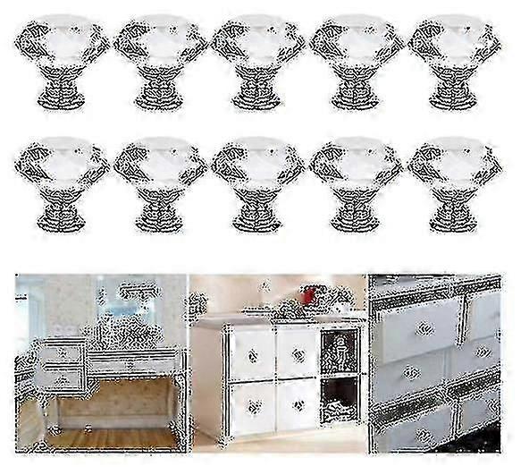 12pcs 30mm Crystal Glass Cabinet Dresser Knob Diamond Drawer Door Knobs Pull Handles