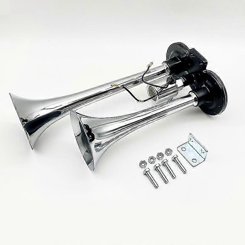 12V Truck Train Boat RV 150db Super Loud Dual Trumpet Air Horn Chrome w Soleno