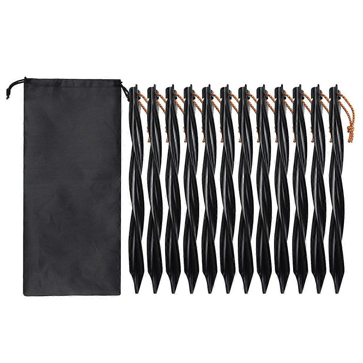12X 25cm Outdoor Tent Pegs Ground Nails with Storage Bag Windproof Nails Camping Accessories Tent Fastening Black