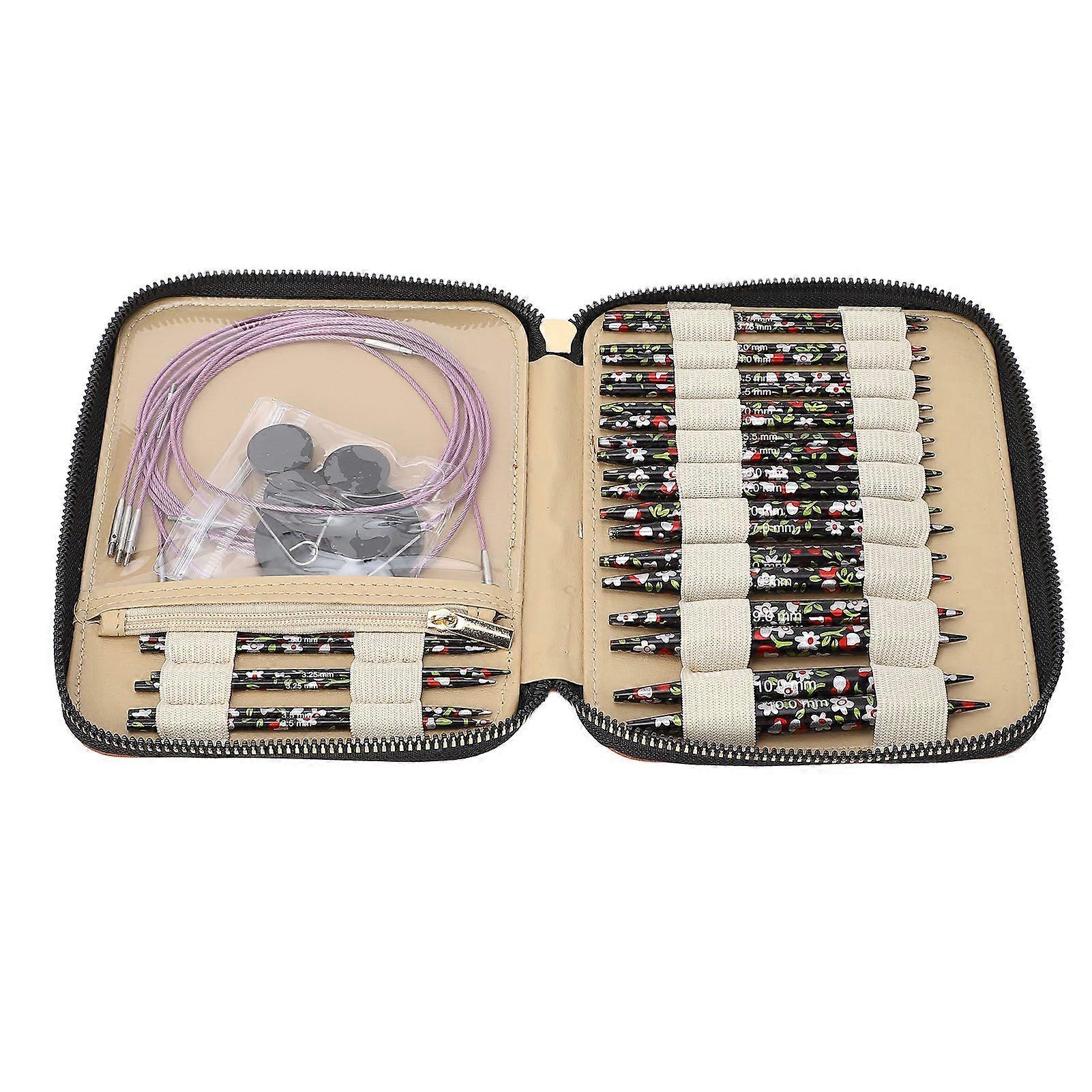 13 Pairs Circular Needles Detachable Aluminum Printing Knitting Needle Set PU Storage Bag for Household Use
