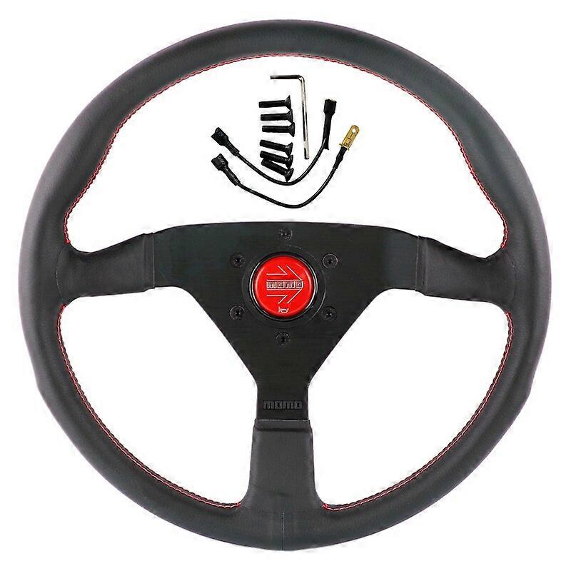 14inch For momo Italy Black Genuine Leather Drift Sport Steering Wheel Vehicle Steering Wheel Covers