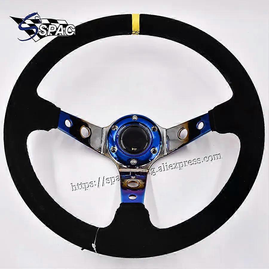 14inch New Style Jdm Racing Steering Wheel Suede Leather With Horn Button - Steering Wheels & Horns