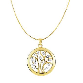 14k Yellow And White Gold Round Tree Of Life Necklace, 18"