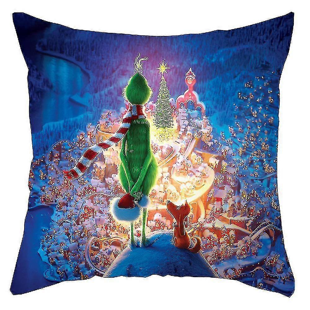 1/4pcs 18" Merry Christmas The Grinch Cushion Cover Throw Green Monster Pillow Case Sofa Home Xmas D