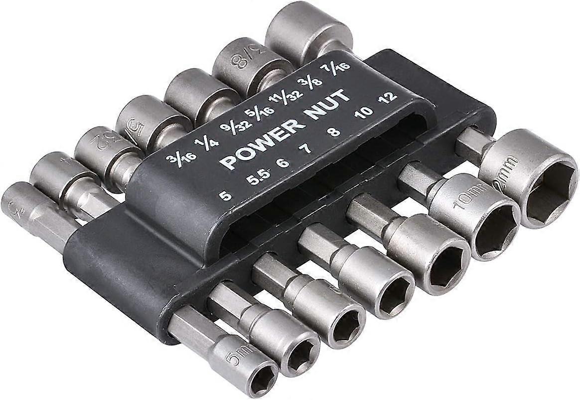 14Pcs Quick Change Power Nut Drill Bit Set, 1/4" 3/16" 1/4" 9/32" 5/16" 11/32" 3/8" 7/16" Hex Shank 5, 5.5.6 7.8.10.12mm,2024 Ping