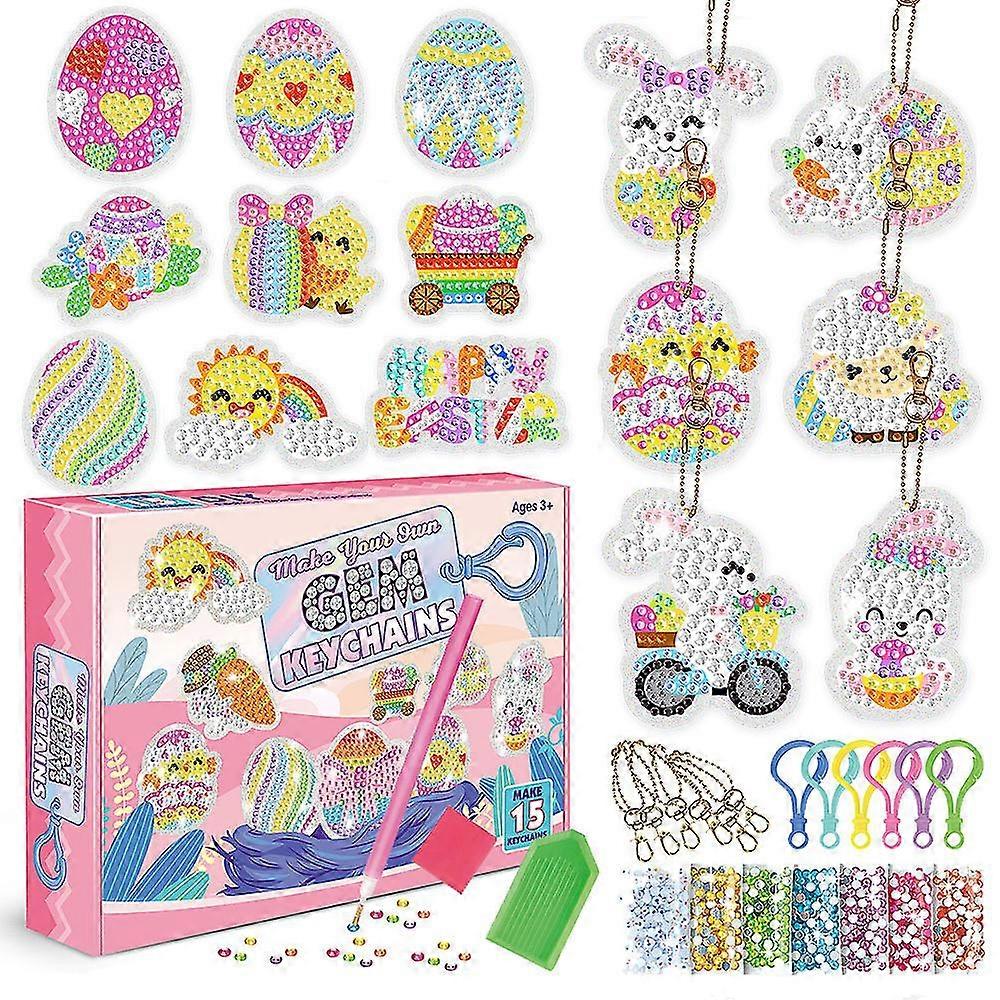 15pcs Diy Easter Eggs Bunny Diamond Painting Keychain Kits Art Crafts Hanging Decoration