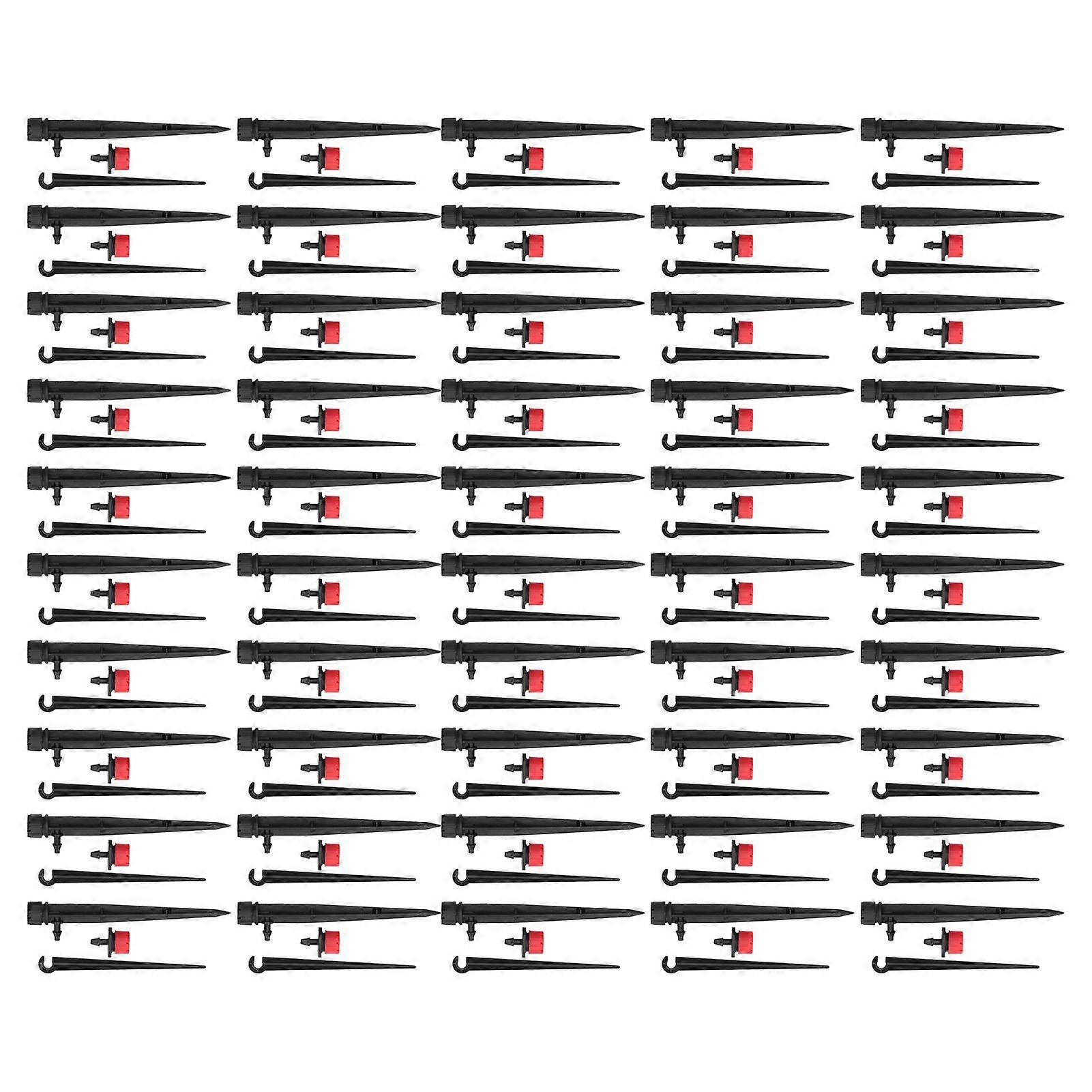 Features1Ground insert rod can be easily inserted into the ground, which helps prevent pipeline blockage and supports plant watering. It is suitable for strawberries, garden flowers, plants, etc. 2The 8?hole dripper can be connected with 4mm/7mm hoses, and then provide 360?degree uniform irrigation for your plants, so that your plants can fully absorb water. 3Professional quality drip hose made by ABS material, UV resistant, resistance to aging, resistance to chemicals, durable in use. 4The size of the dripper is 13.2cm, and the water outlet cover can be rotated as needed to adjust the water flow, which not only saves water, but also allows plants to grow healthily. 5Suitable for vegetable garden, atomization, garden humidification, lawn irrigation, terrace, vegetable irrigation, roof cooling, dust removal, etc.SpecificationItem Type: Irrigation SystemMaterial: ABSColor: As shown in the pictureDripper Length: Approx.13.2cm / 5.2inGround Insert Rod Length: Approx.11cm / 4.3inWeight: Approx.435g/15.3ozApplication: Garden, Atomization, Garden Humidification, Lawn Irrigation, Terrace, Vegetable Irrigation, Roof Cooling, Dust RemovalAssembly(you can choose the assembly quantity according to your needs):1. Cut the 4/7 hose (not including this product) to the desired length.2. Connect the 8-hole dripper to the 4/7 hose.3. Connect the red sprinkler head to the 4/7 hose.4. Use ground insert rod to support the hose.Package List50 x 4/7 Ground Insert Rod 50 x 8-Hole Dripper 50 x Red Sprinkler Head