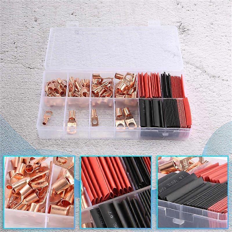 150 Pcs Copper Wire Terminal , AWG 2 4 6 8 10 12 Ring Lug Kit with 70 Pcs Heat Shrink 80Pcs Battery