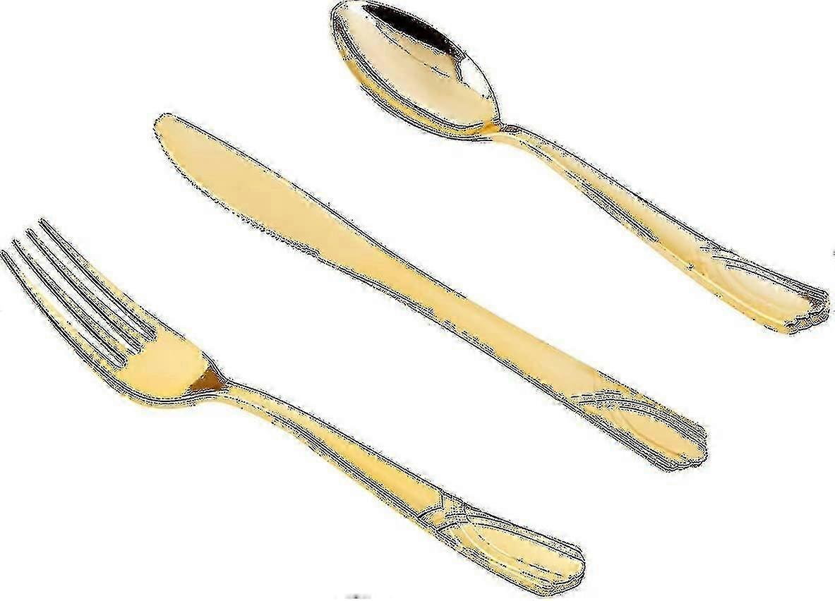 150 Pieces Of Gold Disposable Silver Plastic Gold Tableware Set -50 Forks, 50 Knives, 50 Spoons - Gold Disposable Tableware Set Heavy Plastic Tablewar