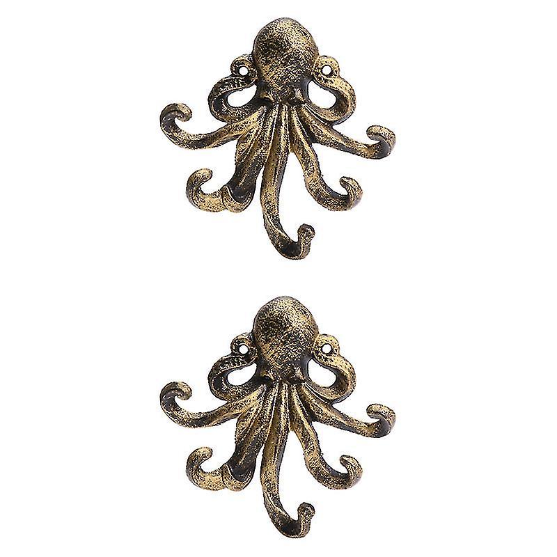 15.5X15.5cm Golden Utility Hooks 2pcs Rustic Octopus Hooks Decorative Wall Hook Animal Wall Ornament