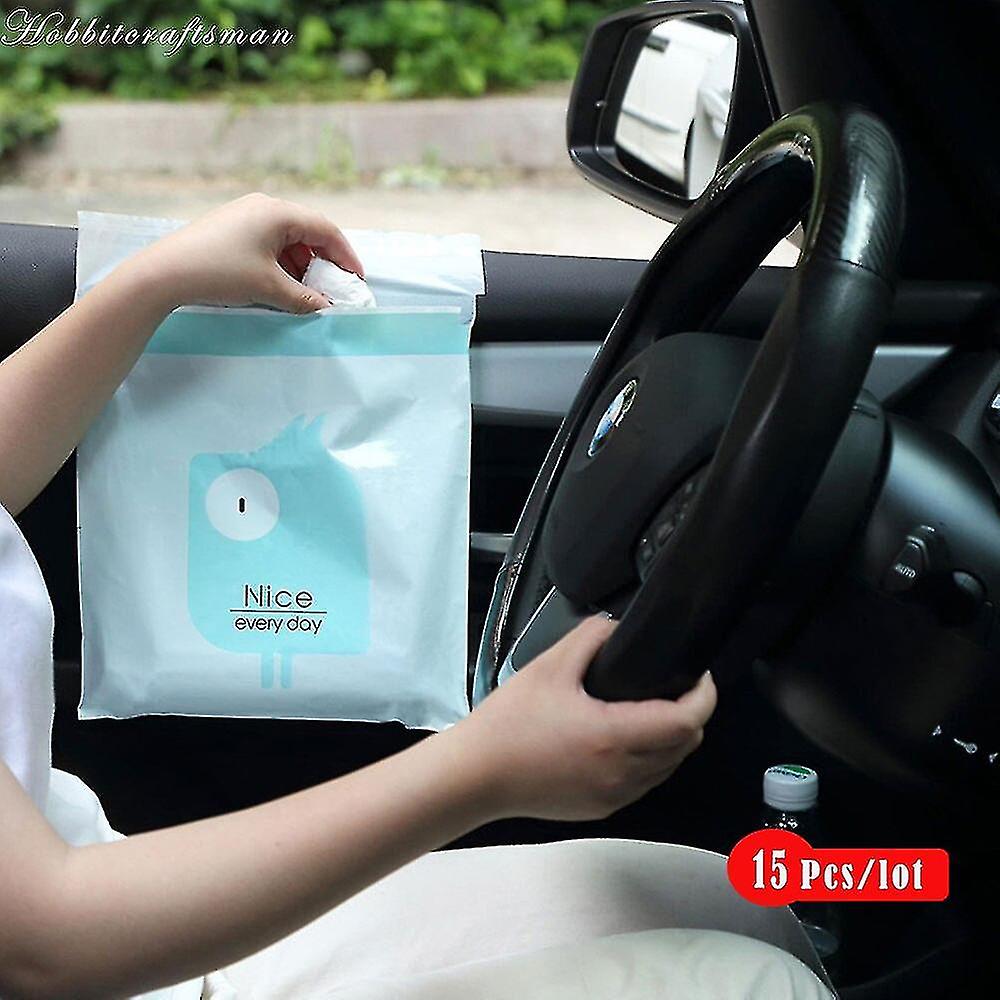 15pcs Self-adhesive Car Trash Bag Cute Cartoon Office Portable Hanging Garbage Bags Disposable Cleaning Bags Car Storage