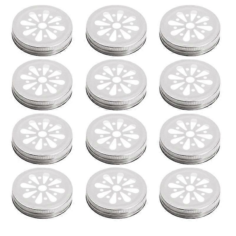 16 Pack Regular Mouth Mason Jar Lids Rust-Resistant Daisy Cutouts with Straw Holes