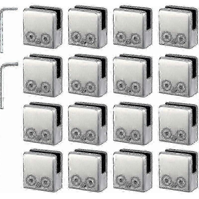 16 Pack 304 Stainless Steel Glass Clamps - Adjustable Square Glass Clamps for Stair Balustrade & Handrail - Polished Finish (8-10mm)