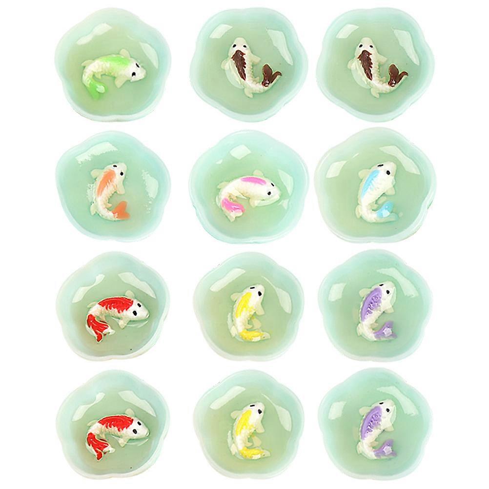 16pcs Miniature Fish Bowl Doll House Fish Tank Miniature Resin Goldfish Tank Models Mixed Color