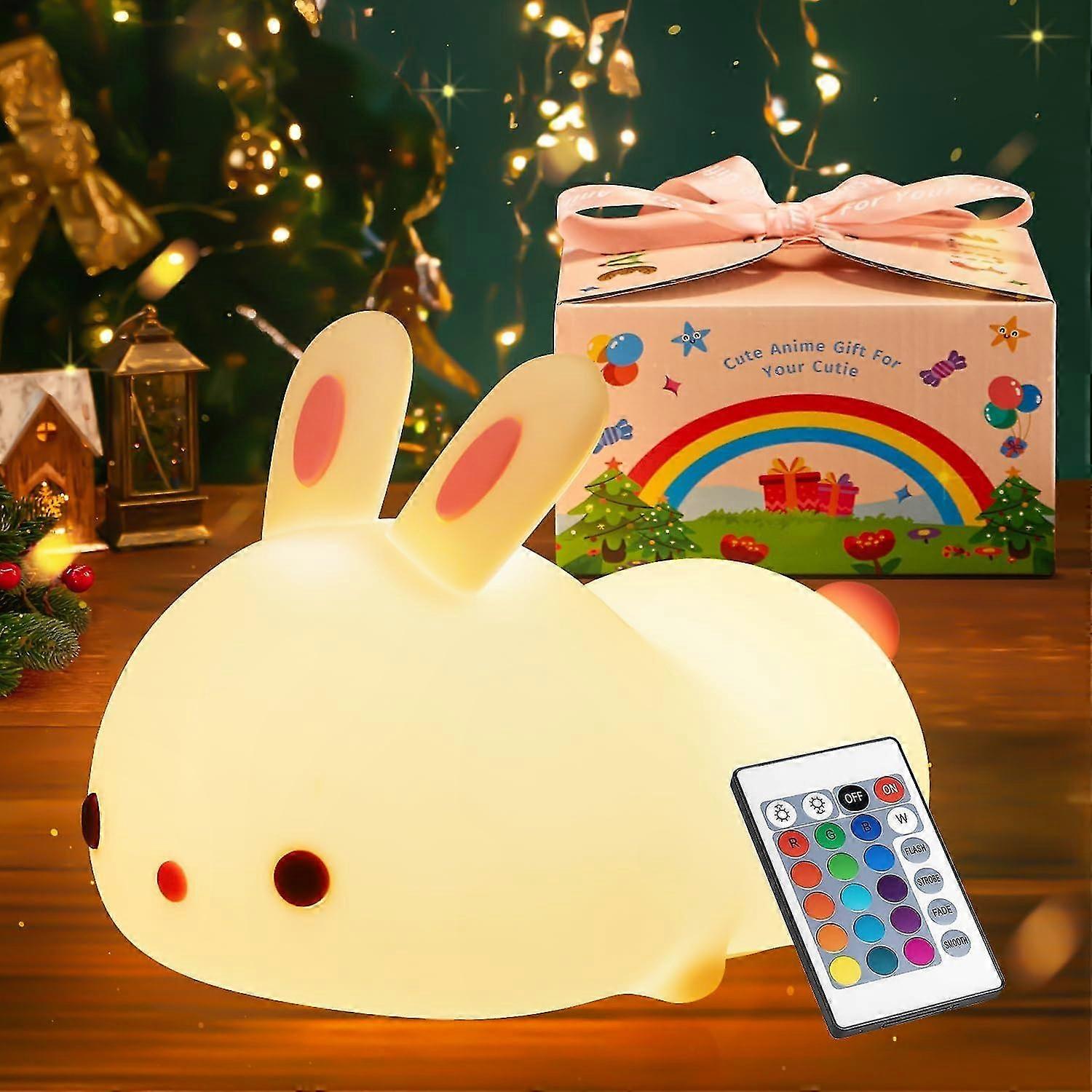 16-Color Dimmable Bunny Night Light for Kids Room Decor, Remote-Controlled Cute Rabbit Lamp for Girls Gifts