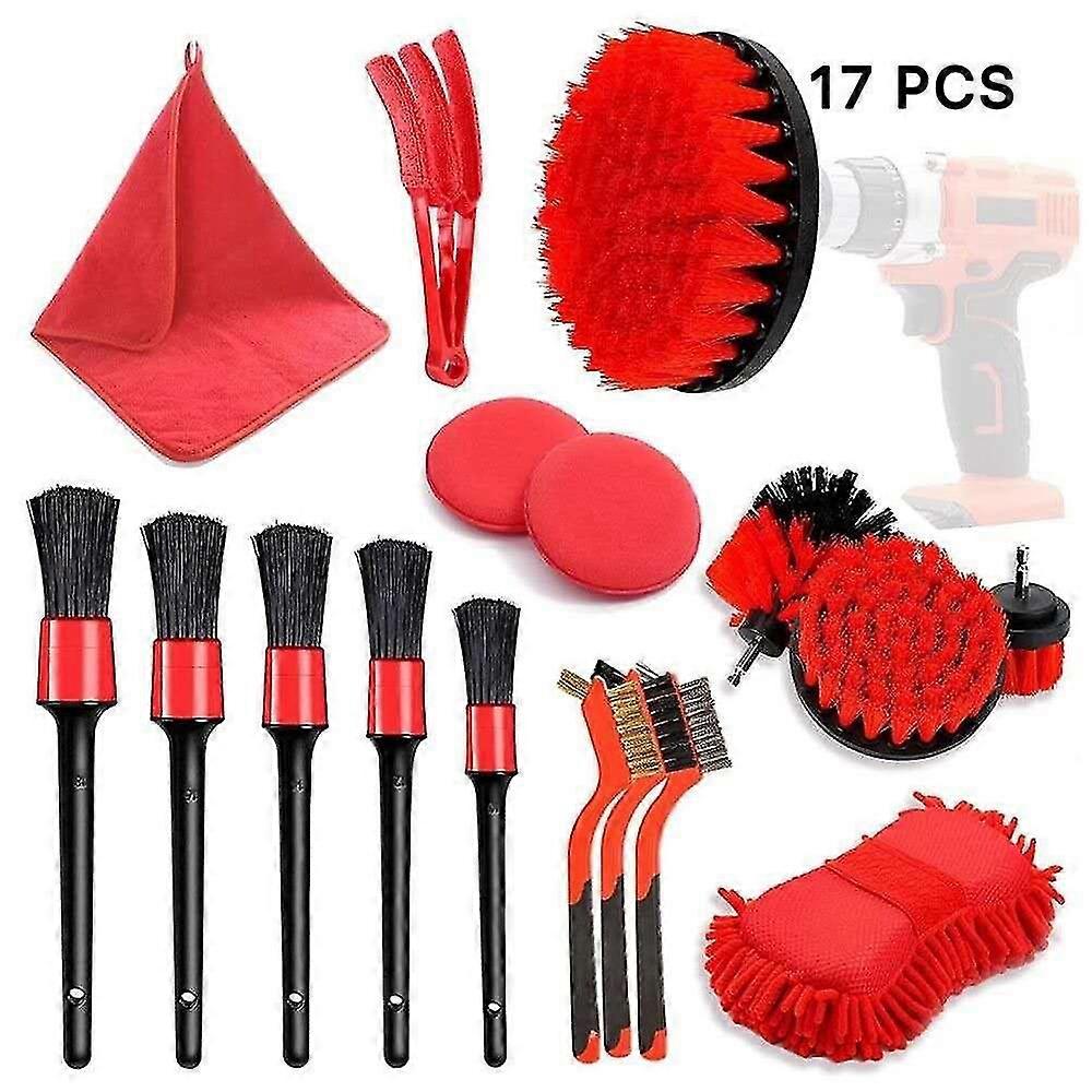17-pack Car Cleaning Tool Kit, Quick Glass Cleaning, With Car Grooming Brush Set, Car Grooming Drill Brush Set, Car Wash Cloth, Air Outlet Brush
