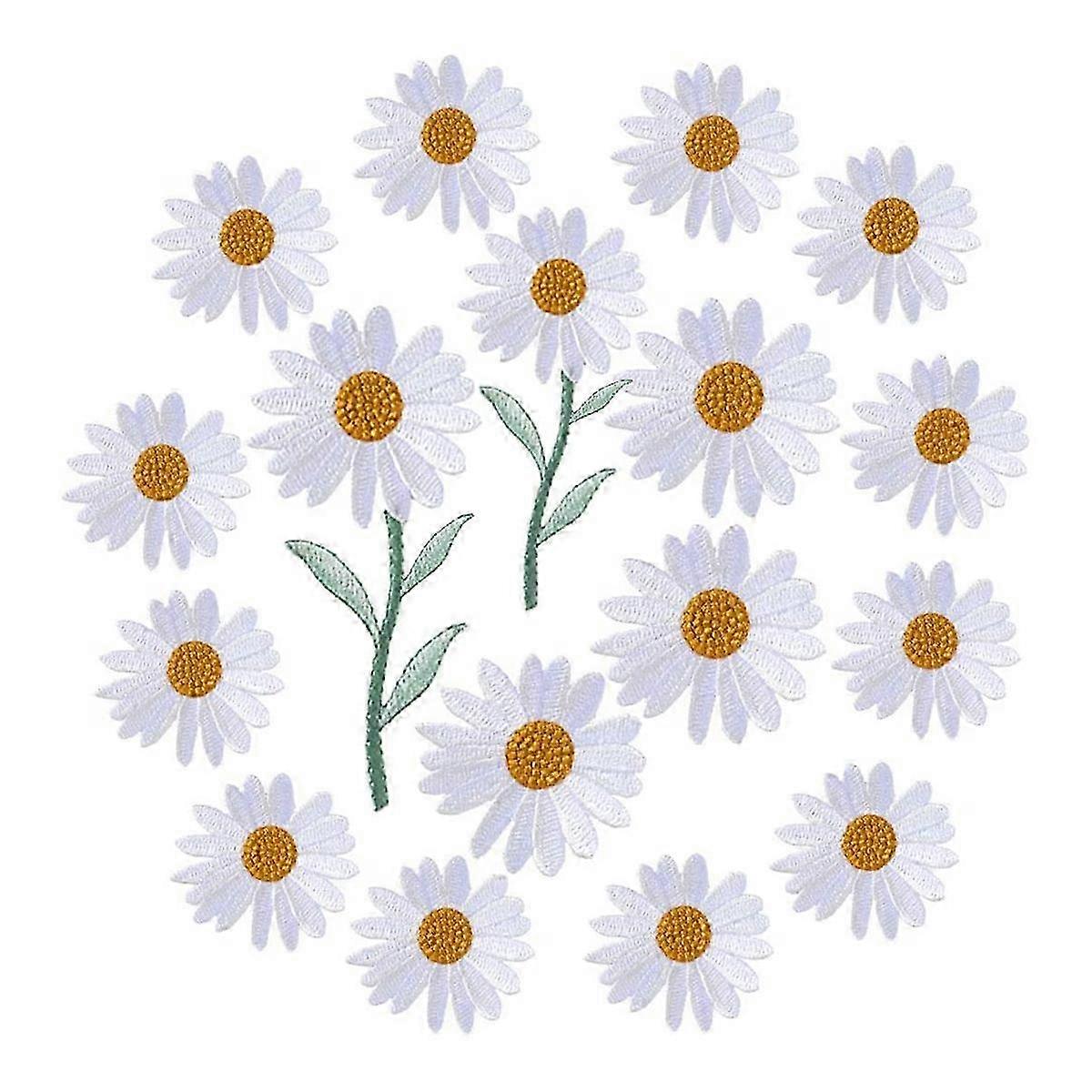 17Pcs Daisy Flower Embroidered Iron/Sew on Applique for Dress Backpack Jacket (White)