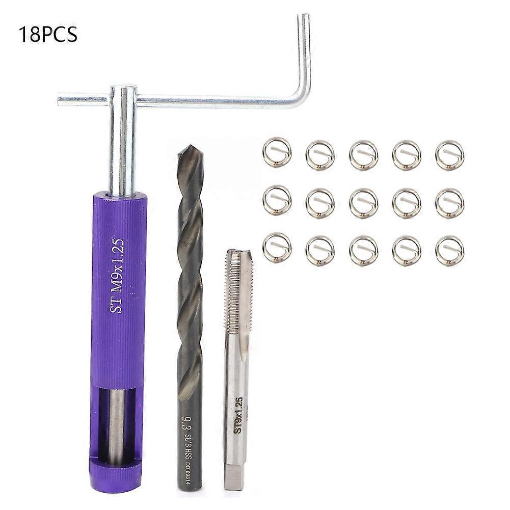 18pcs Stainless Steel Wire Screw Sleeve Thread Repair Insert Kit Tool Set (M9*1.25)