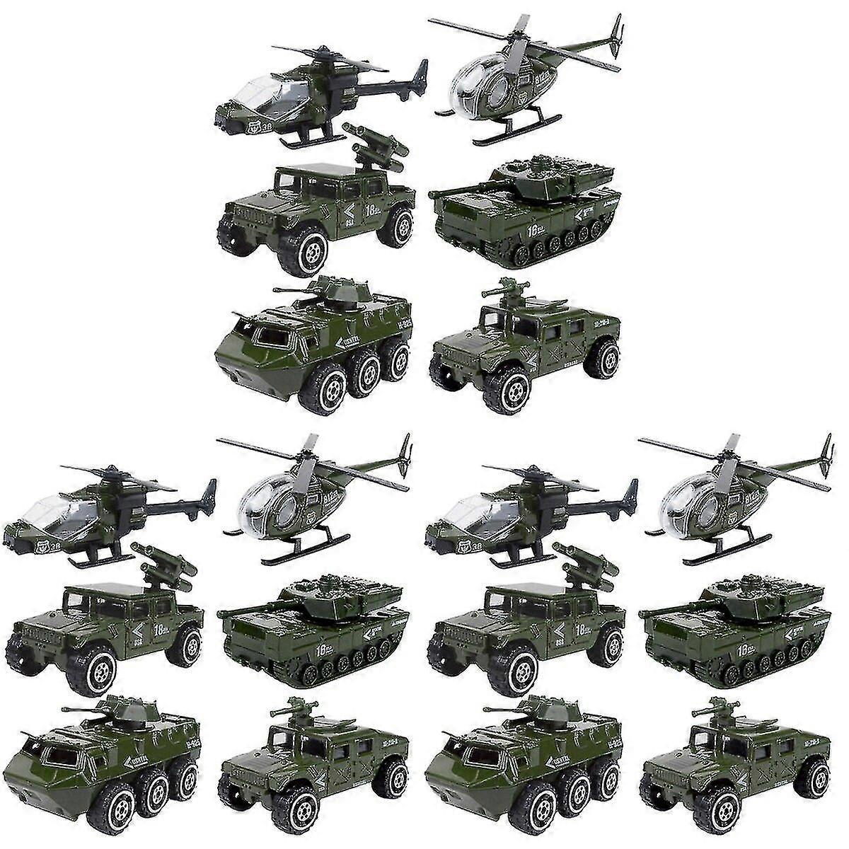 18 Pcs 1:87 Alloy Sliding Car Model Set Alloy Military Vehicle Mini Diecast Car Toys Set Helicopter Tank Armored Car For Kids Boys