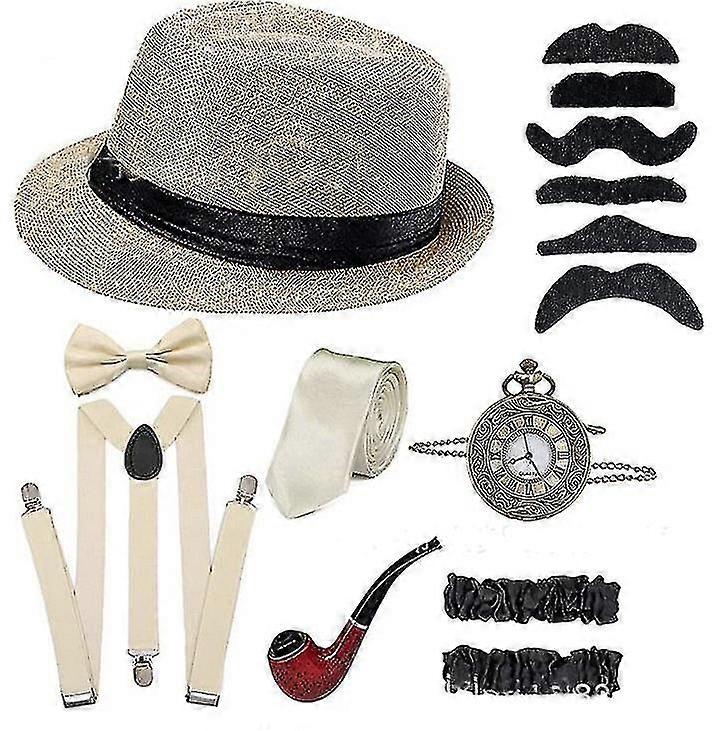 1920s Men's Prom Party Bowler Hat Pipe Pocket Watch Strap Set