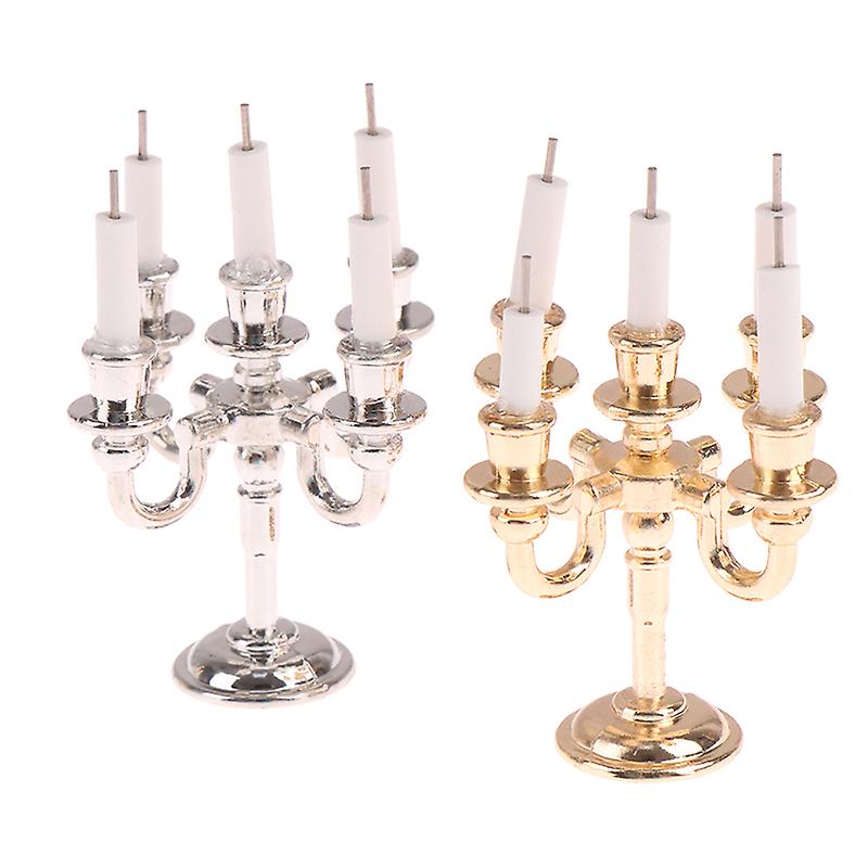 1pair 1:12 Dollhouse Mini Table Candle Candlestick Christmas Scene Home Ornament