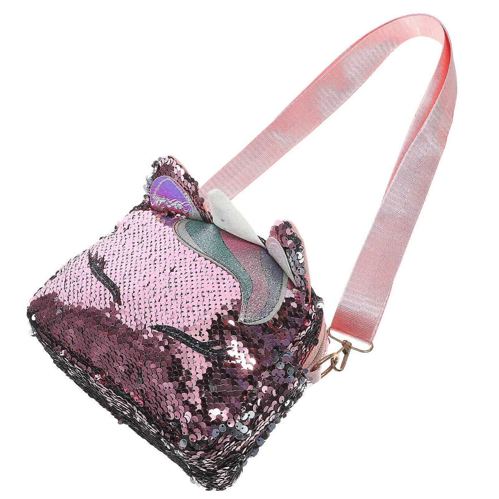 1PC Mini Unicorn Shaped Sequins Ear Handbags Girls Casual Chain Messenger Crossbody Purse Shoulder Bag (Pink)