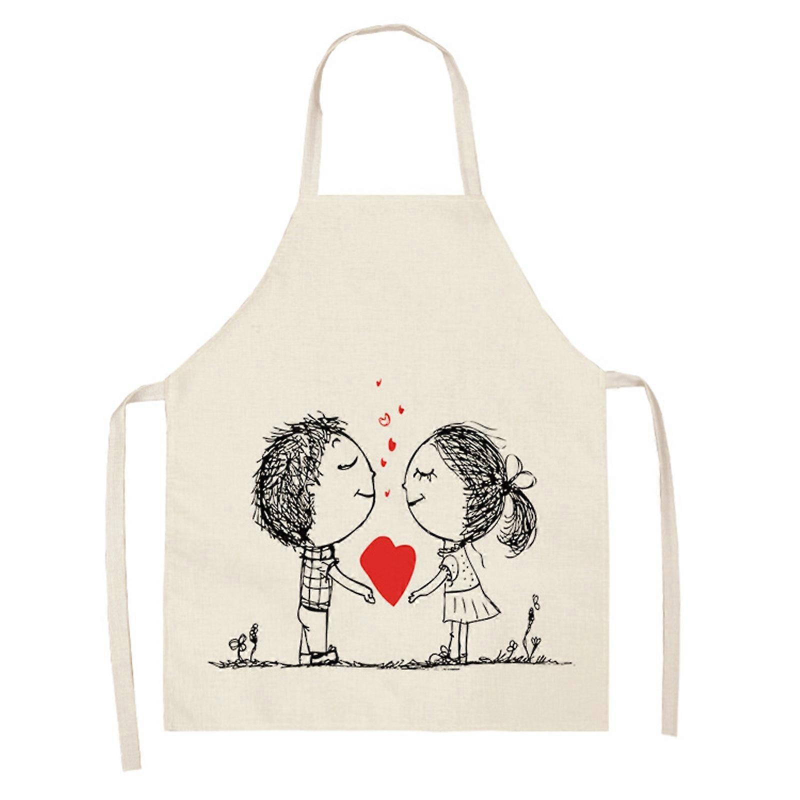 1pc Parent Adult The Family Kitchen Valentine's Day Print Linen Family Aprons