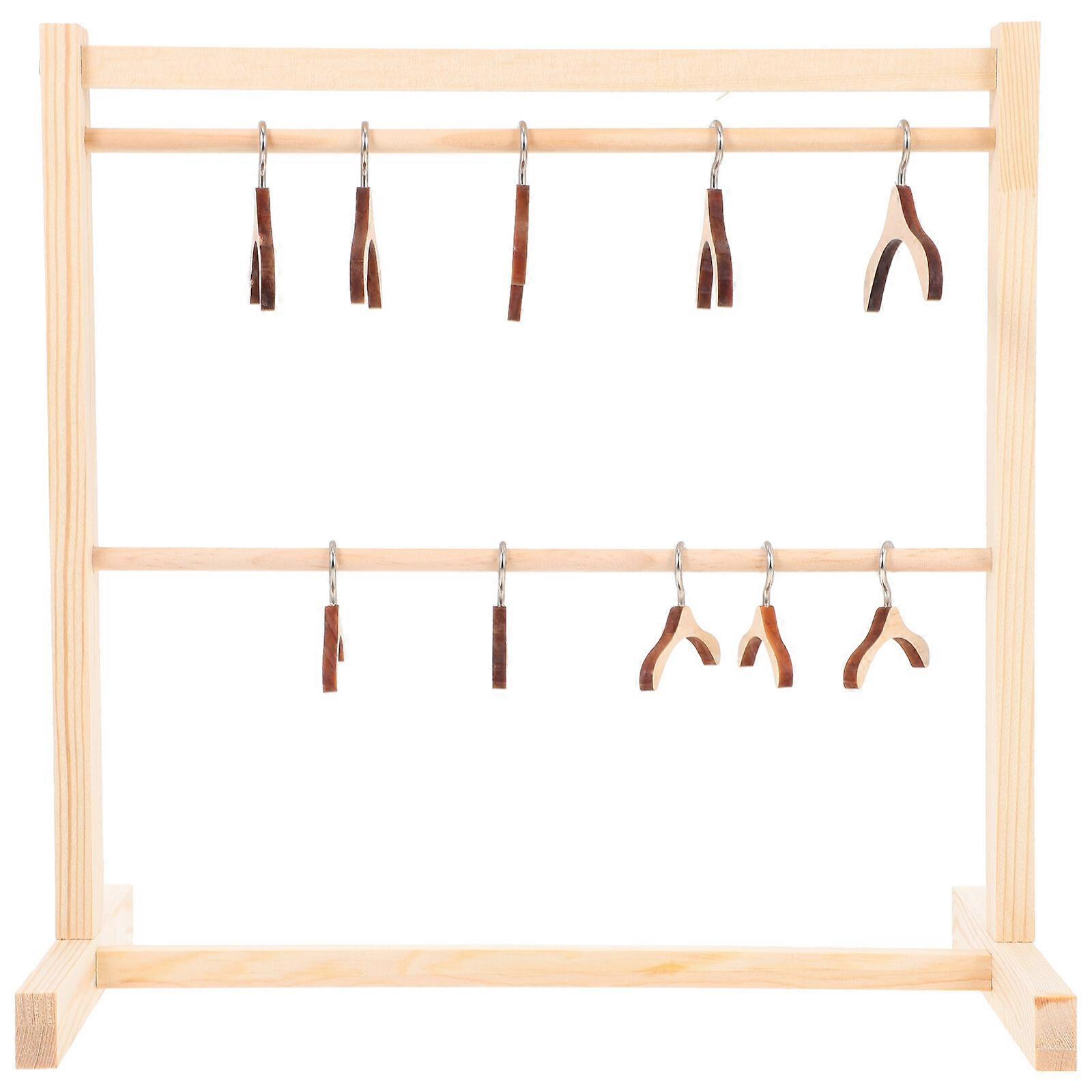 1Set Wooden Doll Garment Rack with Clothes Hangers Doll Clothing Rack for Doll House