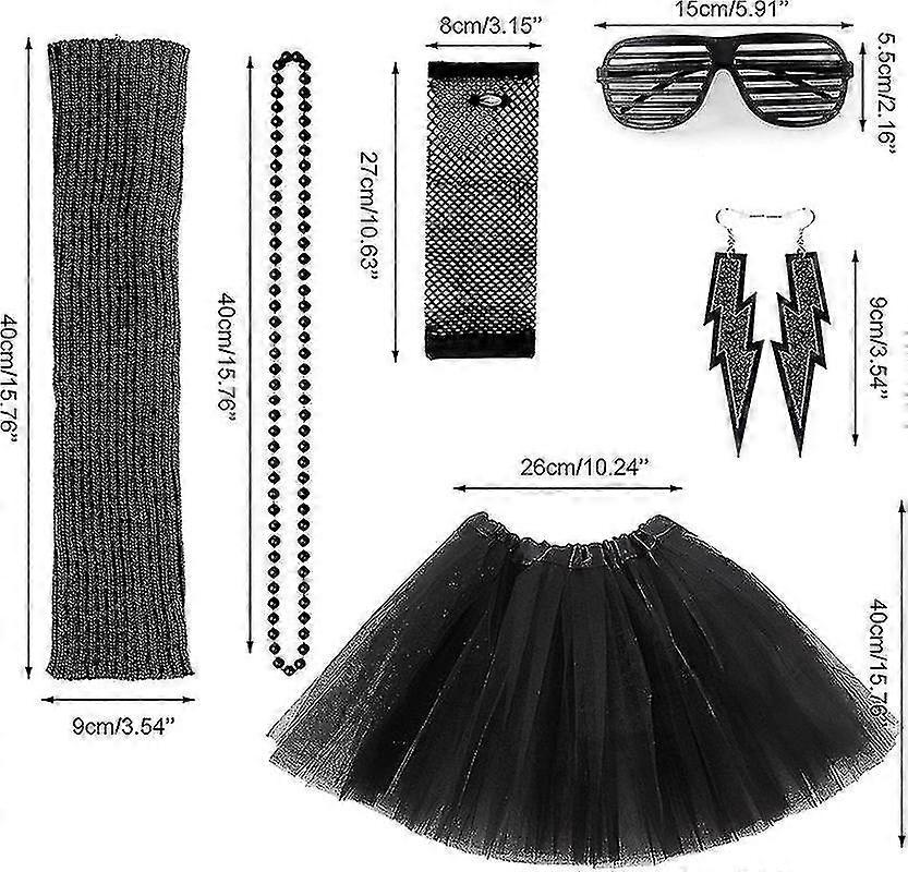 1set, 80s Fancy Dress Costume, 1980s Fancy Party Costume Set Adult Tutu Skirt With Leg Warmers Fishnet Gloves Neon Necklaces Bead Lighting Earrings Su