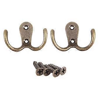 2 x Screw hook Retro metal double hook Metal wall mount hanger coat Antique bronze for hats