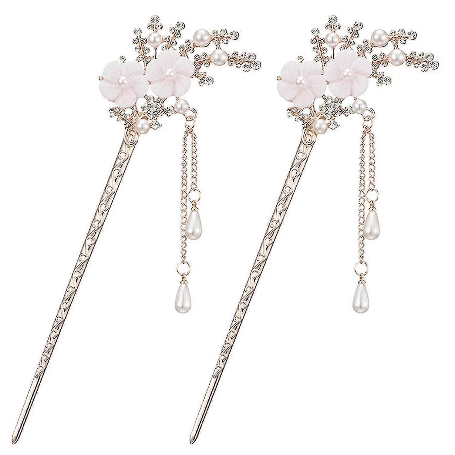 2 Pcs Rhinestone Pearl Flower Hair Stick Chinese Hair Chopsticks Vintage Tassel Hair Pin Chignon Pin Chopsticks Hair Styling Hair Making Accessories