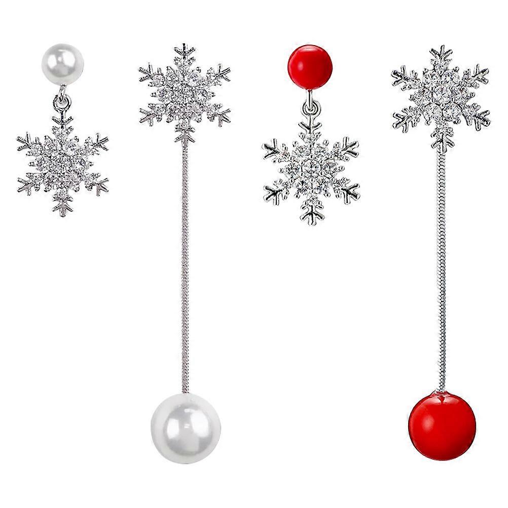 2 Pairs Chic Pearl Earrings Stylish Ladies Earrings Asymmetry Ear Accessory
