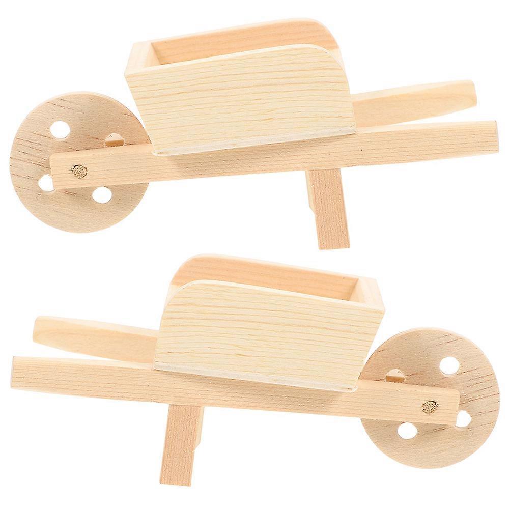 2 Pcs Mini Wooden Cart Models Realistic Dollhouse Wheelbarrows for Home Garden Decor Miniature Scenes Photography Props Unique Gift