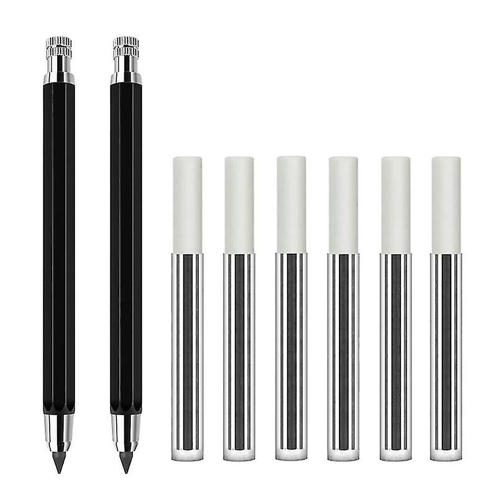 2 Pcs 5.6mm Lead Holder Automatic Mechanical Pencil With Sharpener And Charcoal Lead Refill, 6pcs E