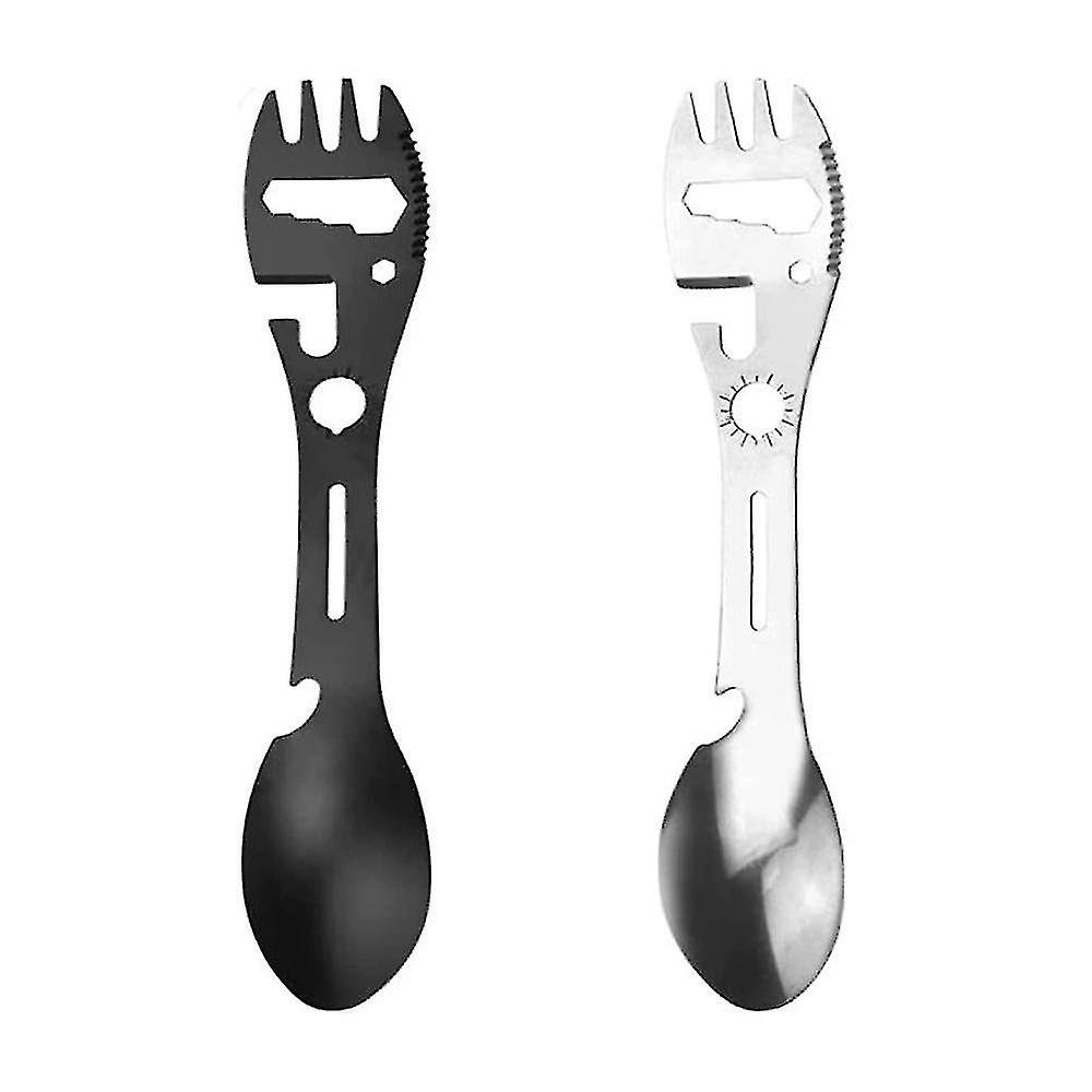 2 Pack Stainless Steel Multi-function Camping Fork - Portable Bottle Opener For Camping, Traveling, Backpacking